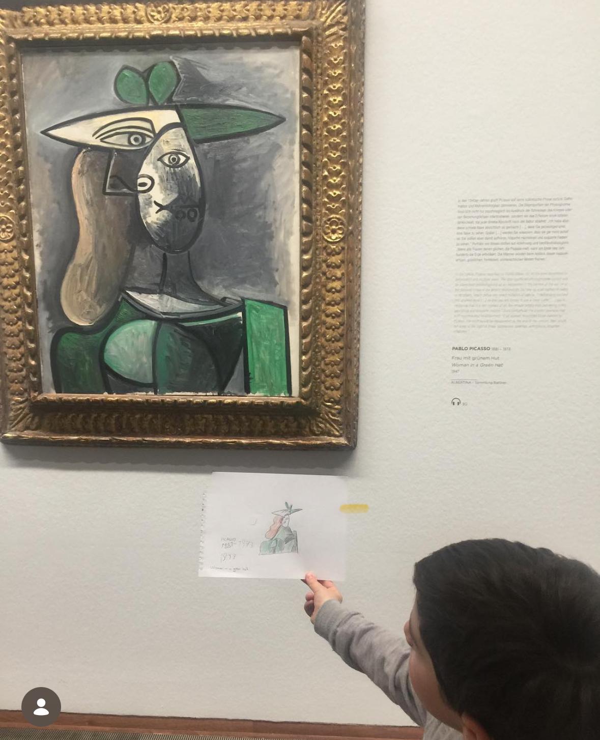 "Yanda paylaştığım fotoğraf, 5 yaşındayken Viyana’daki Albertina Müzesi’nde Picasso’nun bir eserinden etkilenip yere oturarak çizdiğim resme ait. Bu kare benim için çok özel; çünkü sanatla kurduğum ilk samimi bağlardan birini temsil ediyor. Yıllar sonra Paris’te tekrar Picasso’nun eserlerinin karşısına geçmek, o çocuksu heyecanımın hiç kaybolmadığını ve sanata olan ilgimin nasıl güçlenerek devam ettiğini fark etmemi sağladı"
